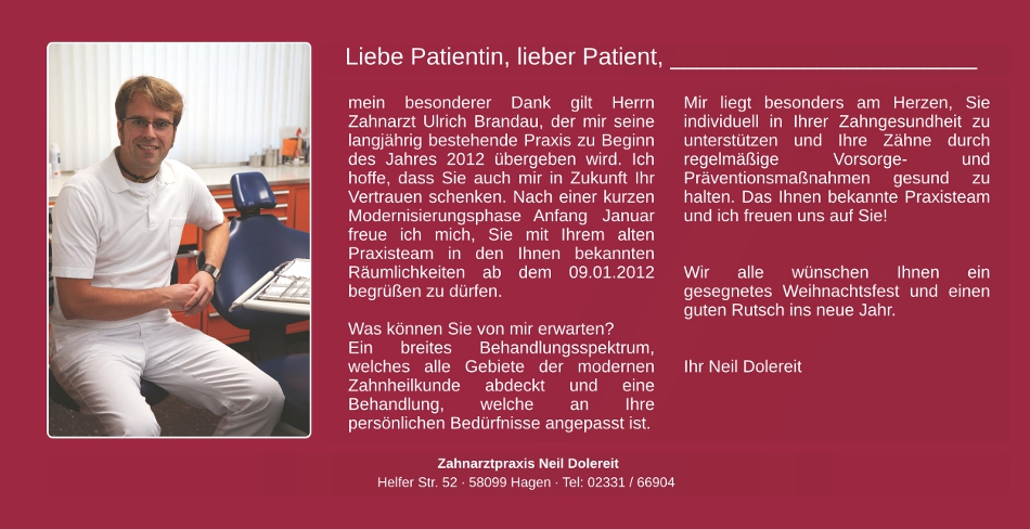 Zahnarzt Neil Dolereit - Helfer Str. 52 - 58099 Hagen - Tel: 02331 66904